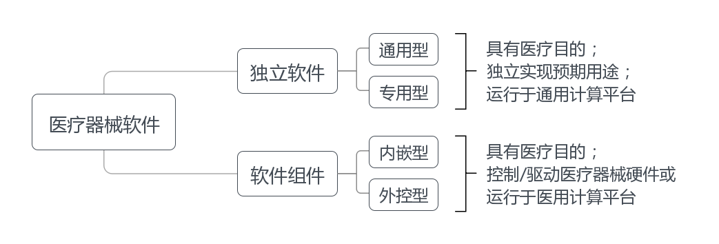 醫(yī)療器械軟件包括本身即為醫(yī)療器械的軟件或者醫(yī)療器械內(nèi)含的軟件,前者即醫(yī)療器械獨(dú)立軟件(簡(jiǎn)稱獨(dú)立軟件),后者即醫(yī)療器械軟件組件(簡(jiǎn)稱軟件組件)。