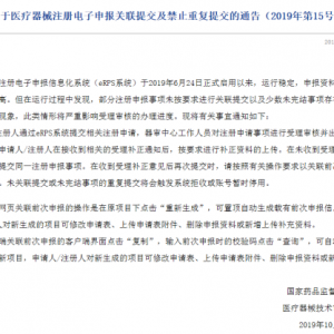 關(guān)于醫(yī)療器械注冊(cè)電子申報(bào)關(guān)聯(lián)提交及禁止重復(fù)提交事宜